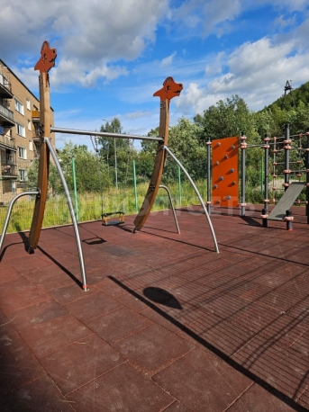 Просторный двор с достаточным количеством места для парковки, новая детская площадка во дворе. Удобное расположение под комерцию.