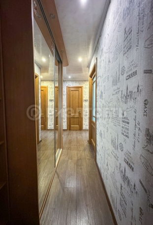 Выполнен косметический ремонт. Санузел раздельный, кафель. Замена проводки (медь) и трубы. Стены и полы выровнены, во всех комнатах ламинат. На кухне, в ванной и в коридоре полы кафель. Входная дверь металлическая. Окна заменены на ПВХ, выходят на разные стороны.
