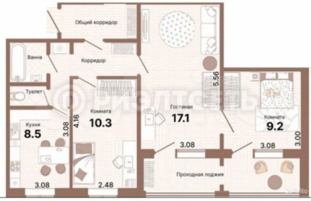 Комнаты смежно-изолированные, 2 лоджии, застеклены.