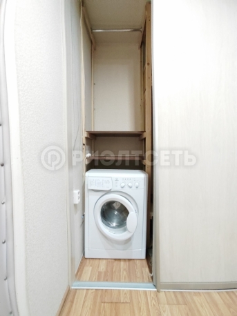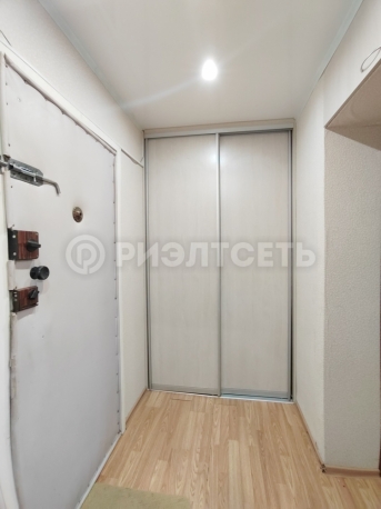 В прихожей установлен встроенный шкаф-купе для хранения вещей. Во всей квартире напольное покрытие ламинат.