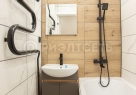 Ванная комната отделана керамогранитом, создающим ощущение простора и чистоты. Смесители имеют гарантию пять лет, гарантируя их долговечность и качество. Вся сантехника подобрана с особым вниманием к деталям, подчеркивая общий дизайн помещения.