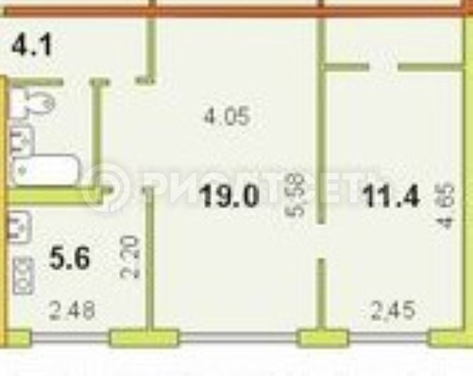 Комнаты смежные площадью 19 м2 и 12 м7, без учета кладовки , которую можно убрать и увеличить комнату еще на 2.5 м2.