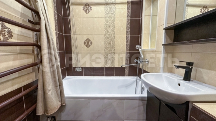 Выполнен косметический ремонт. Санузел раздельный, кафель. Замена проводки (медь) и трубы. Стены и полы выровнены, во всех комнатах ламинат. На кухне, в ванной и в коридоре полы кафель. Входная дверь металлическая. Окна заменены на ПВХ, выходят на разные стороны.