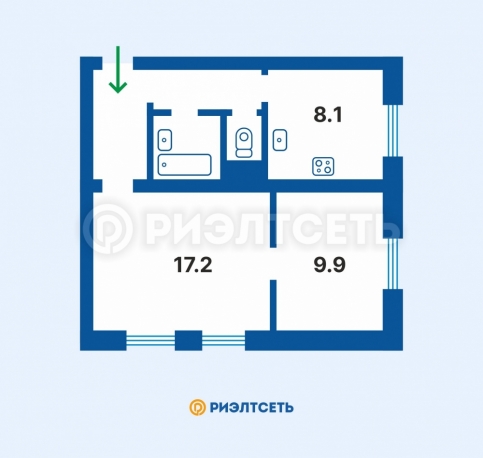 Двухкомнатная квартира с кухней 8 кв. м.