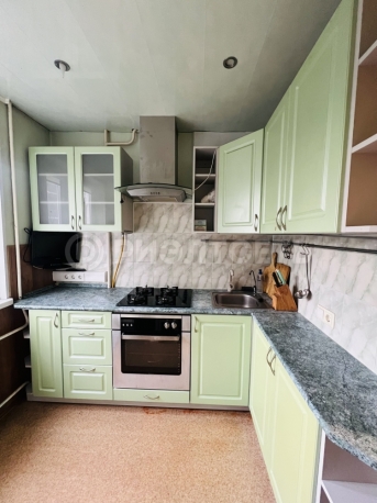 На кухне остается кухонный гарнитур.