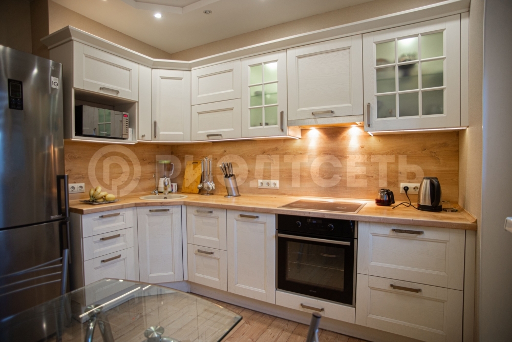 Большая. просторная кухня 9,1 м2 квадратной формы с выходом на балкон "ласточкино гнездо".