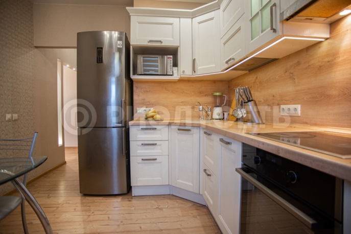 Выполнен качественный, современный ремонт в приятных тонах.