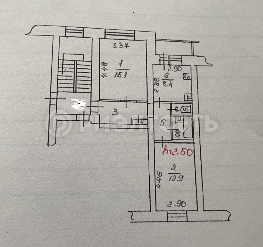 - Комнаты раздельные на разные стороны 15,1 и 12,9 кв.м.;